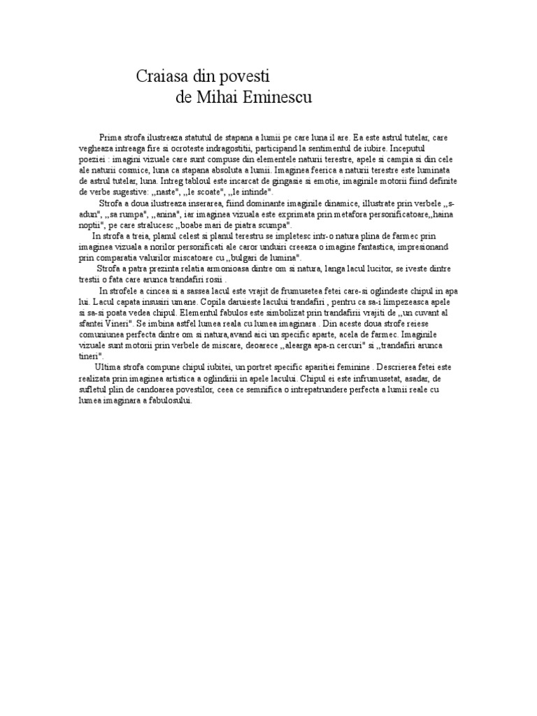 Referat Craiasa Din Povesti De Mihai Eminescu Semnificatia Titlului 334018 Graduo