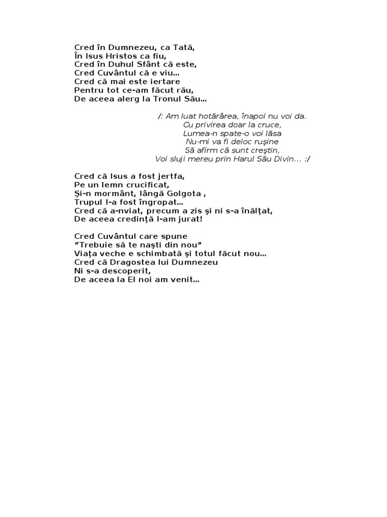 Cred In Dumnezeu Ca Tata The Creed Negativ Versuri 2016 Variantă Noua Isaura Bijy