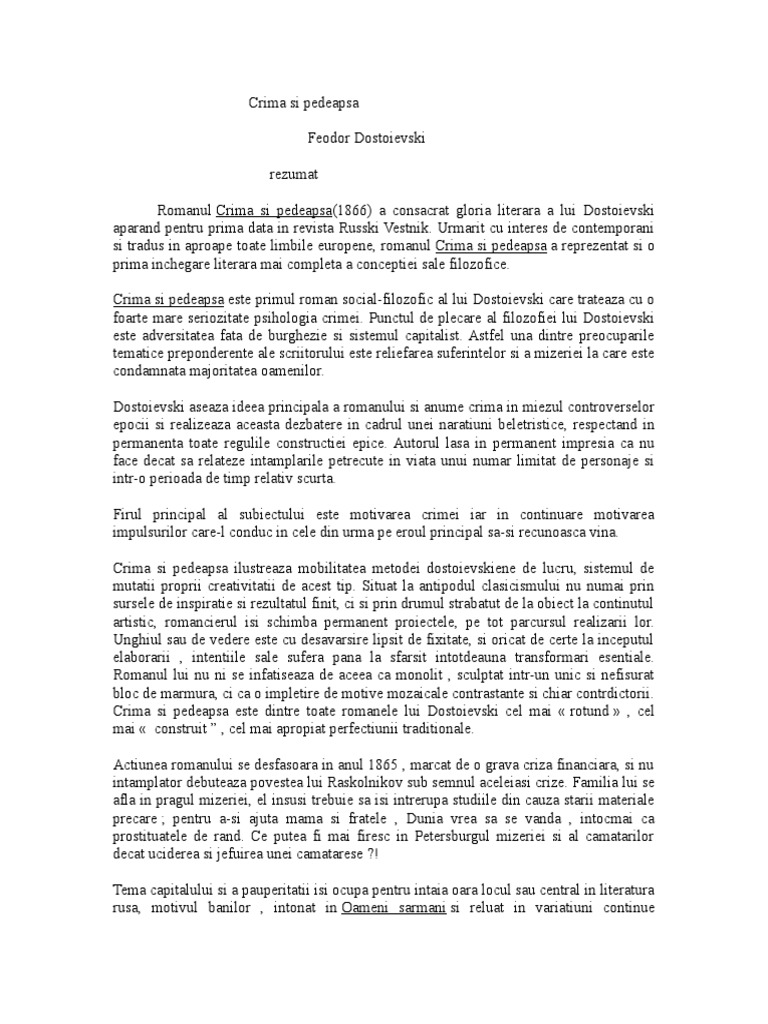 Crima Si Pedeapsa De Dostoievski Rezumat Recenzie