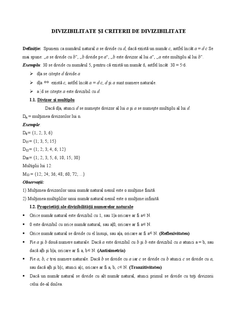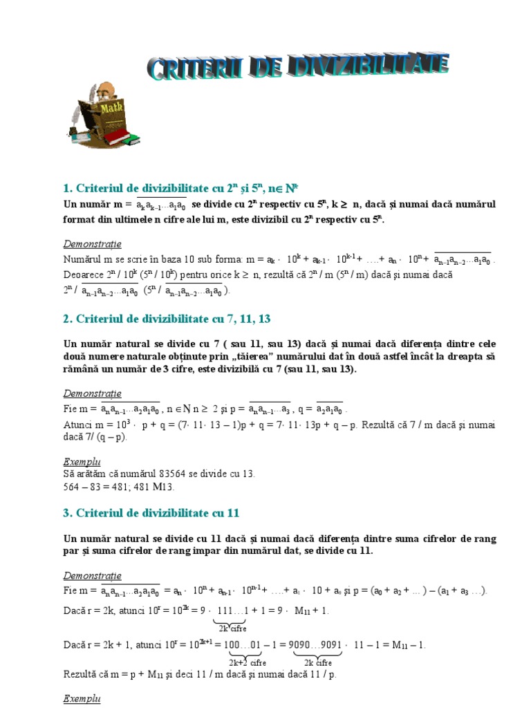 Criterii De Divizibilitate Numar Divizibil Anideșcoală Ro