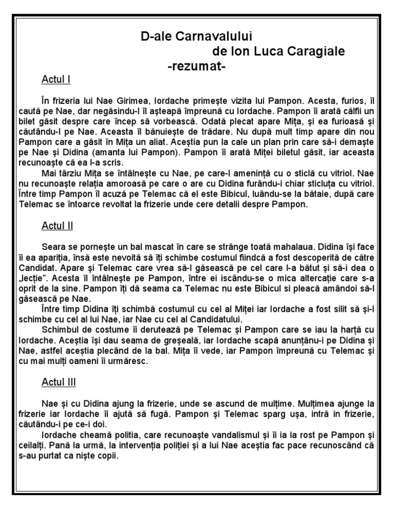 Doc D Ale Carnavalului De Ion Luca Caragiale Rezumat Stefan Zaharia Academia Edu