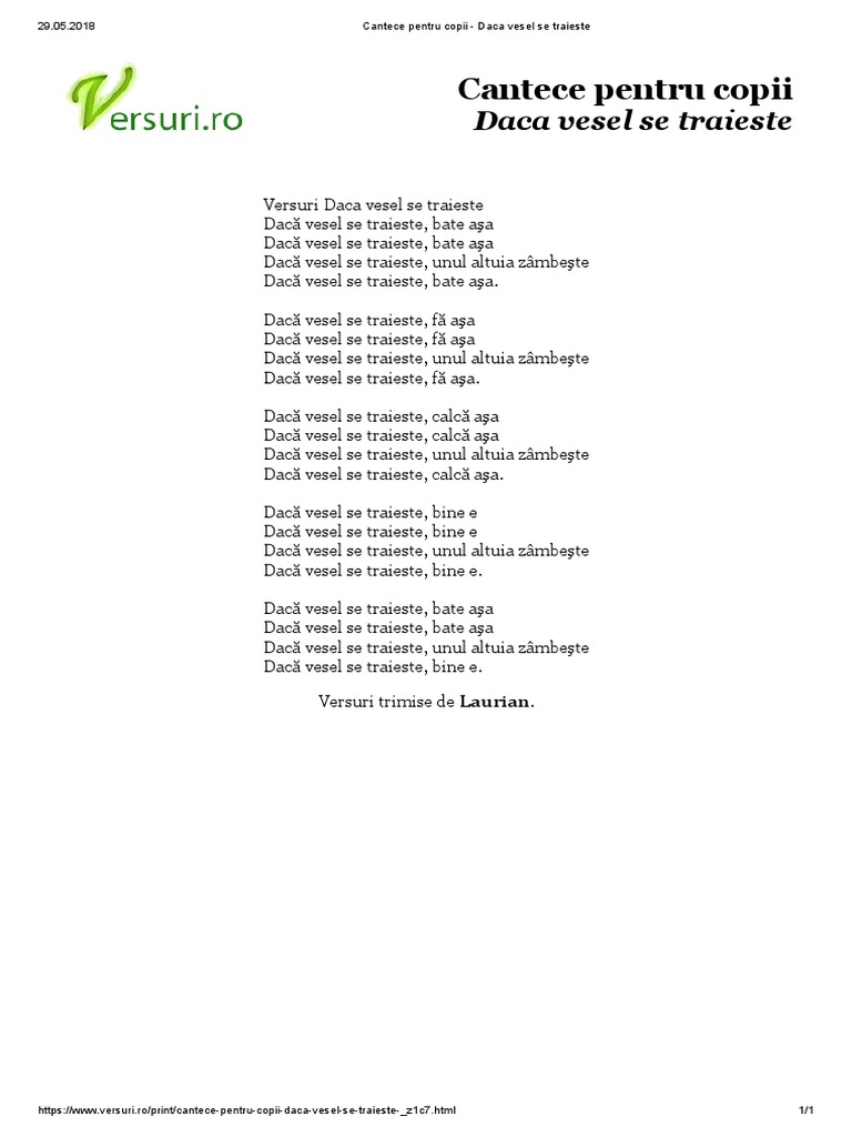 Cantece Pentru Copii Daca Vesel Se Traieste