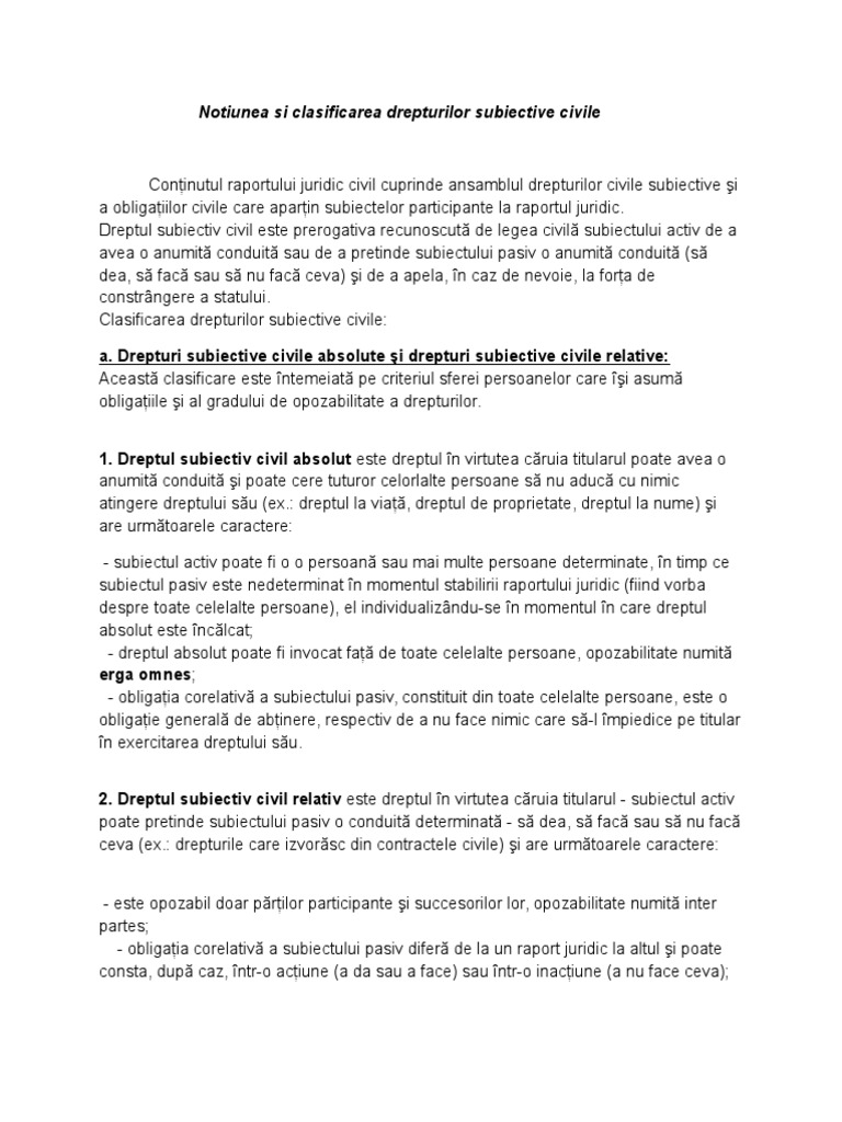 2 Notiunea Si Clasificarea Drepturilor Subiective Civile