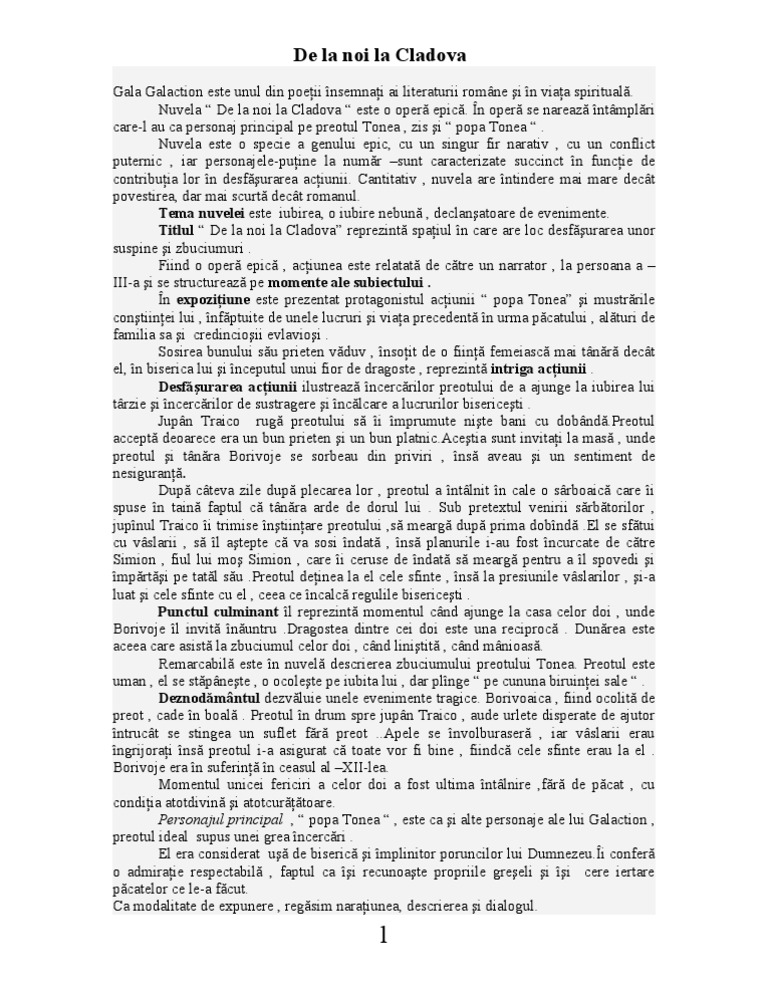Referat De La Noi La Cladova De Gala Galaction Pdf Document