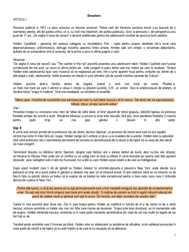 De Veghe In Lanul De Secara J D Salinger Pdf
