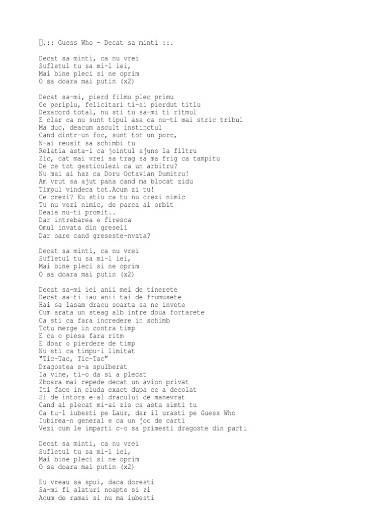 Versuri decat sa minti de guess who.