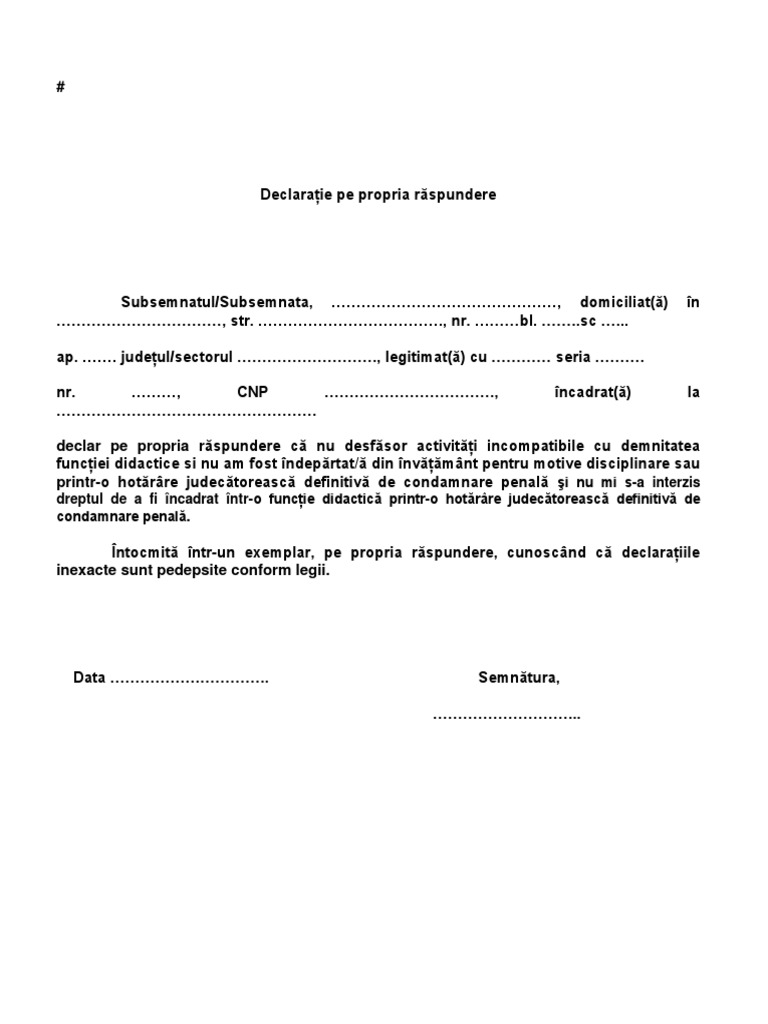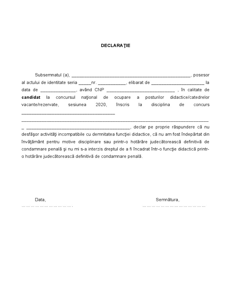 Declaratie Pe Propria Raspundere Titularizare 2020