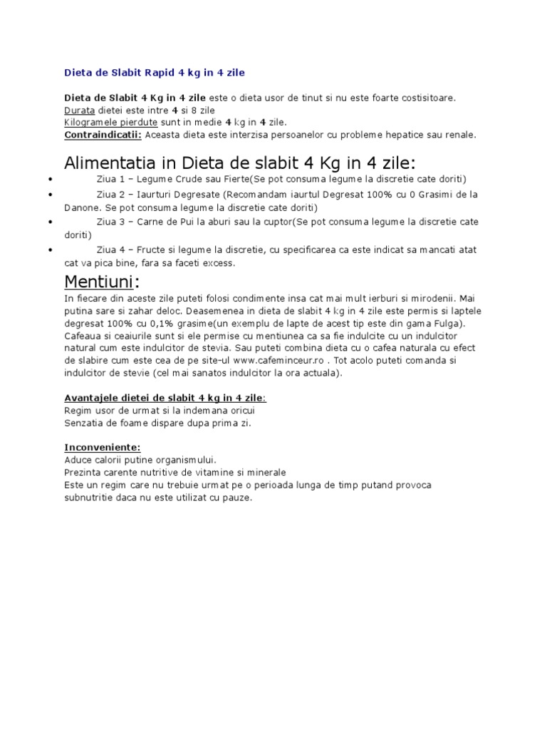 Dieta De Slabit Rapid 4 Kg In 4 Zile
