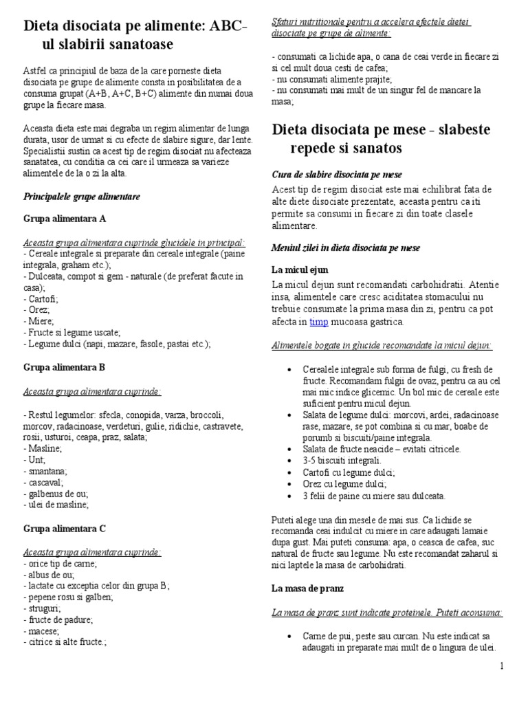 Exemple De Diete Disociate