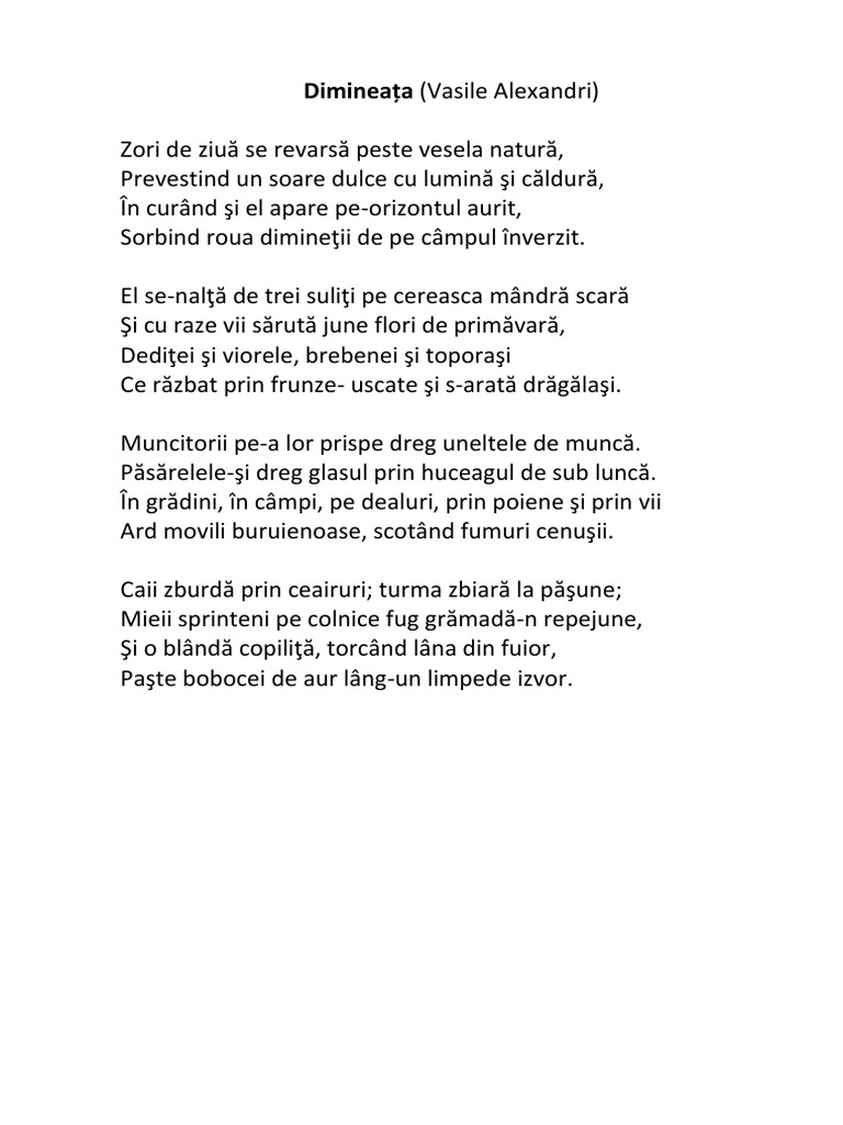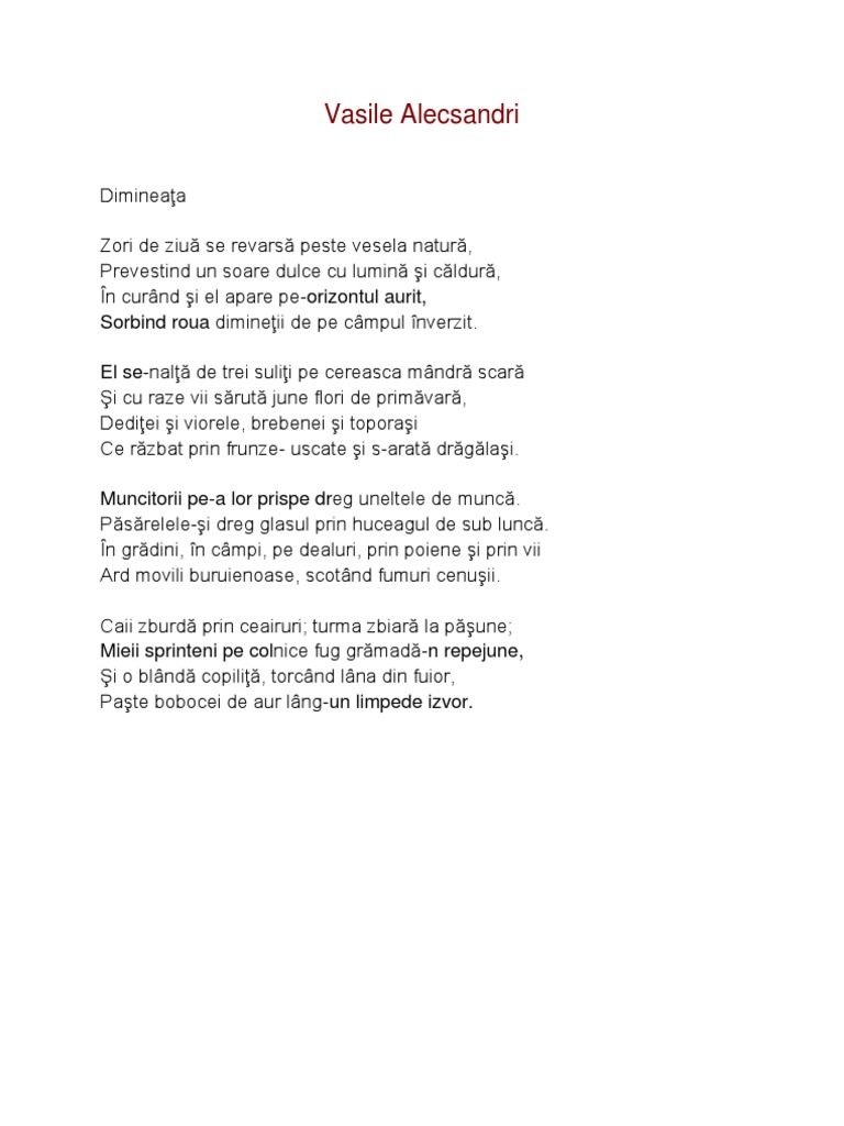 Dimineata De Vasile Alecsandri Anideșcoală Ro