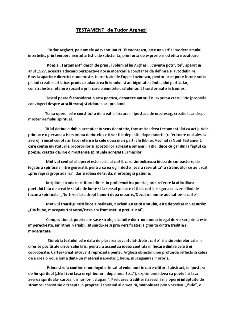 Testament De Tudor Arghezi