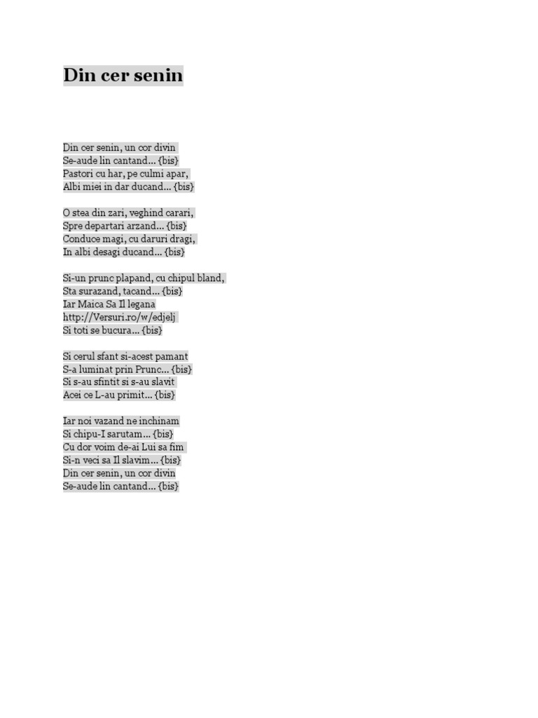 Din Cer Senin Versuri