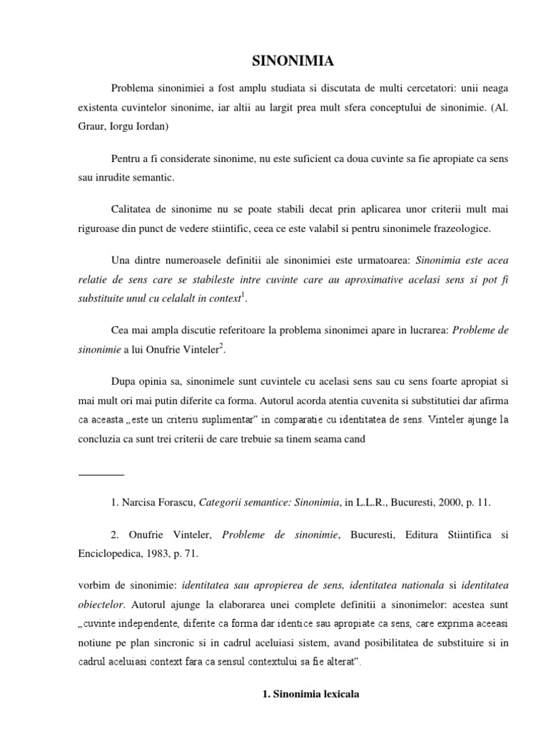 Sinonime Analizabile Studiu De Caz Sinonimia Diminutivală Pdf Document