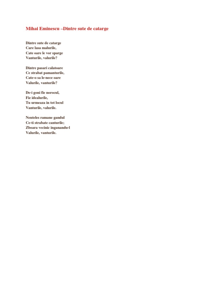 Dintre Sute De Catarge De Mihai Eminescu Anideșcoală Ro