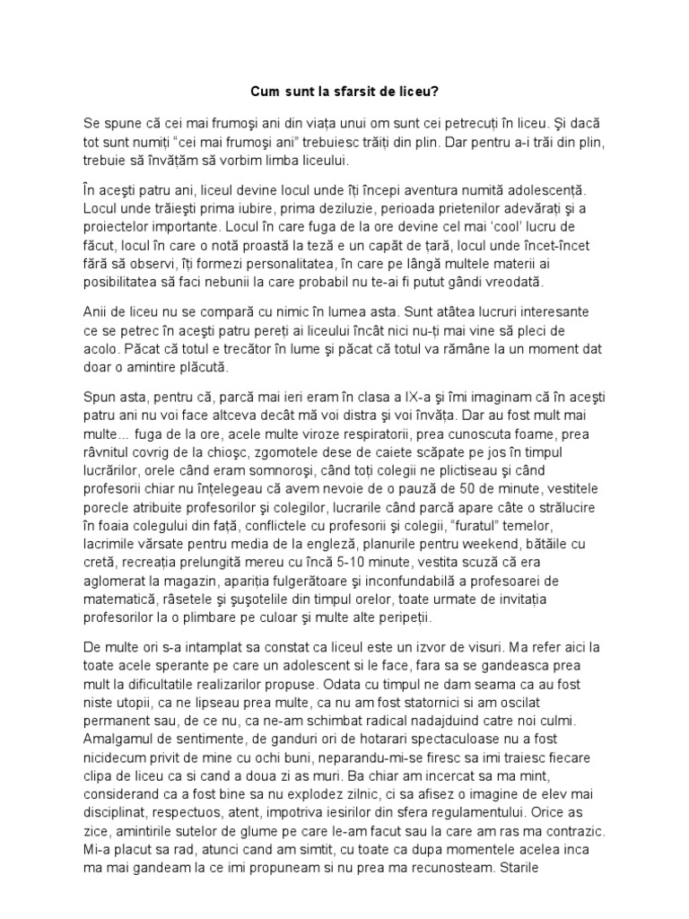 Discurs Absolvire Liceu Diriginte