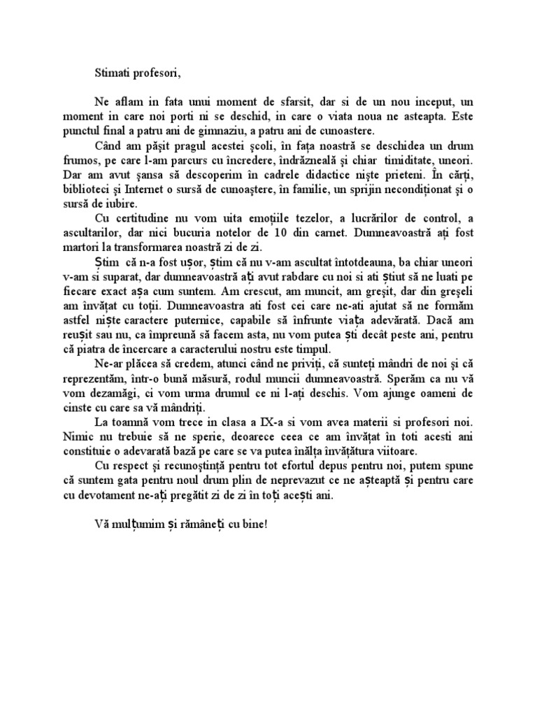 Discurs De Sfarsit De Clasa A 8 A