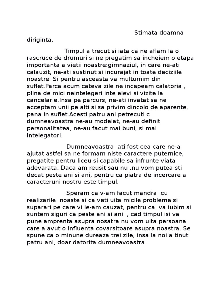 Mesaj Final Discurs Diriginte Clasa A 8 A Doc Document