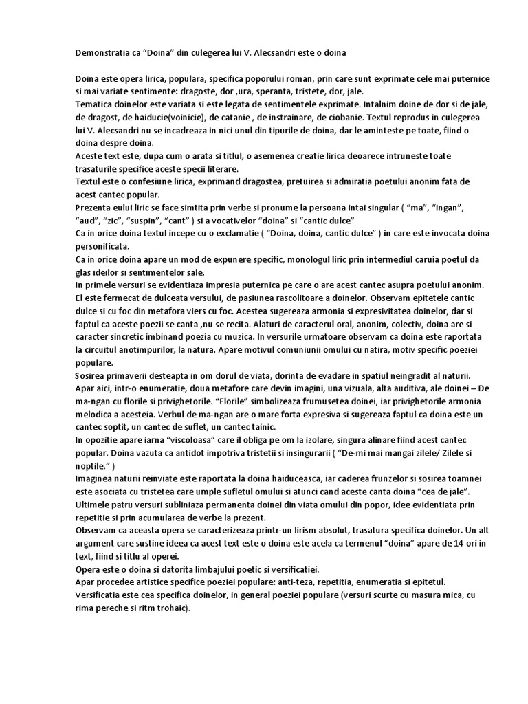 Referat Doina Lui Vasile Alecsandri Demonstratie 338139 Graduo