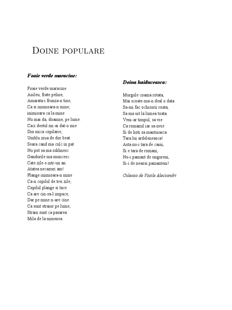 Doine De Vasile Alecsandri