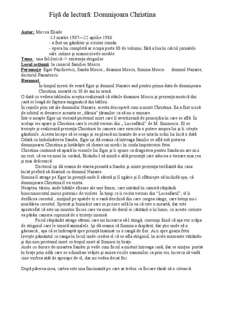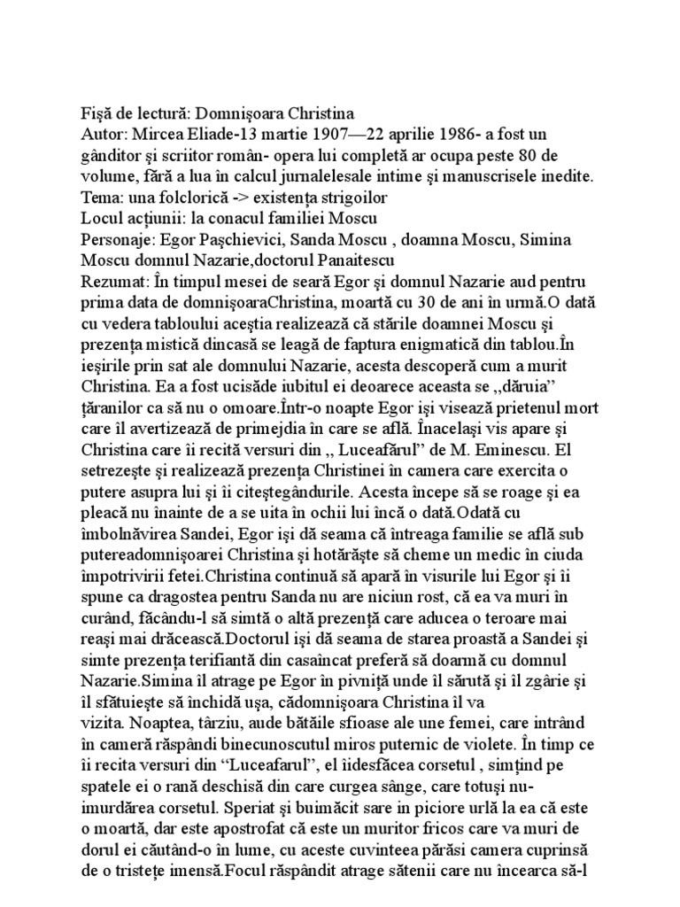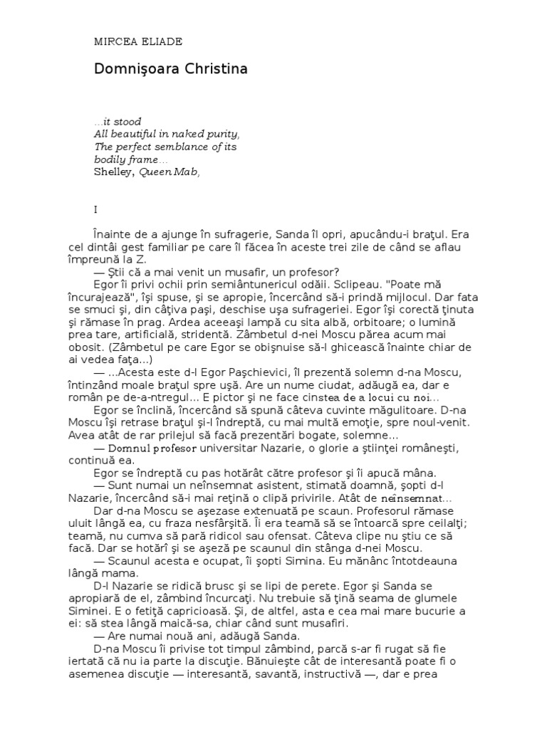 Domnisoara Christina 1936 De Mircea Eliade Doina Soltan