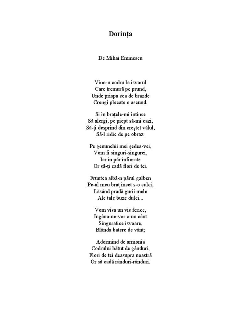 Dorinta De M Eminescu Comentariu Pe Strofe Wattpad