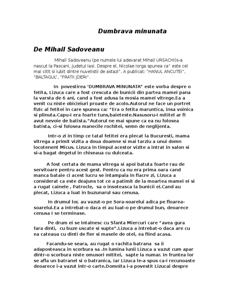 Dumbrava Minunata Mihail Sadoveanu Pdf