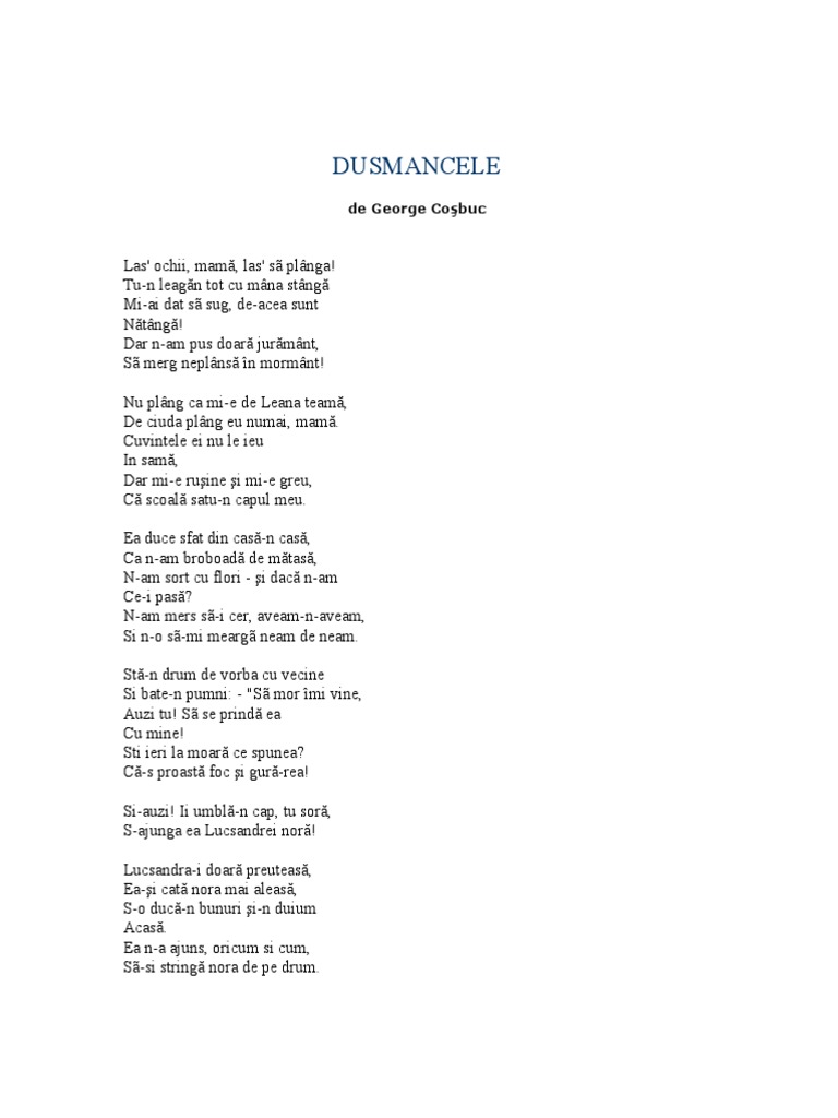 Col Nat I M C Dusmancele De George Cosbuc Youtube