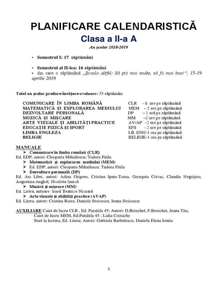 Planificare Anuala La Clasa A I A Pentru Anul Scolar 2018 2019 Dupa Noul Manual De Diana Latug