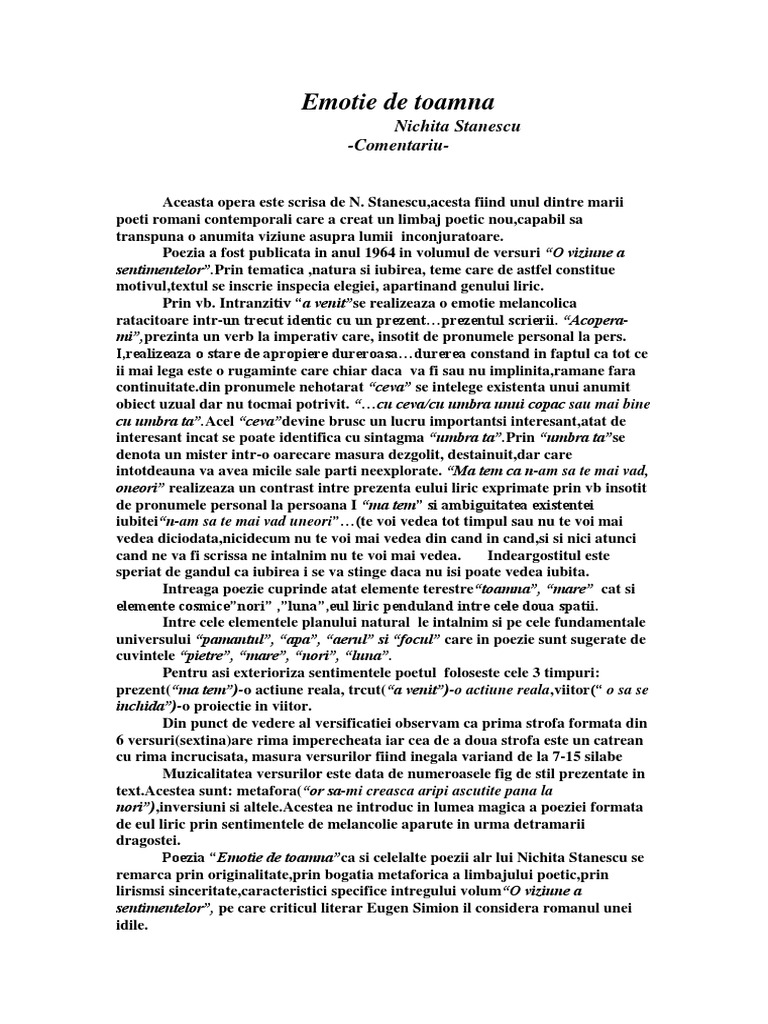 Referat Emotie De Toamna De Nichita Stanescu 327386 Graduo