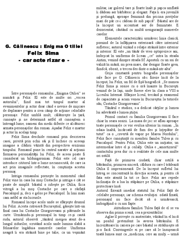 George Calinescu Enigma Otiliei Caracterizarea Lui Felix Sima