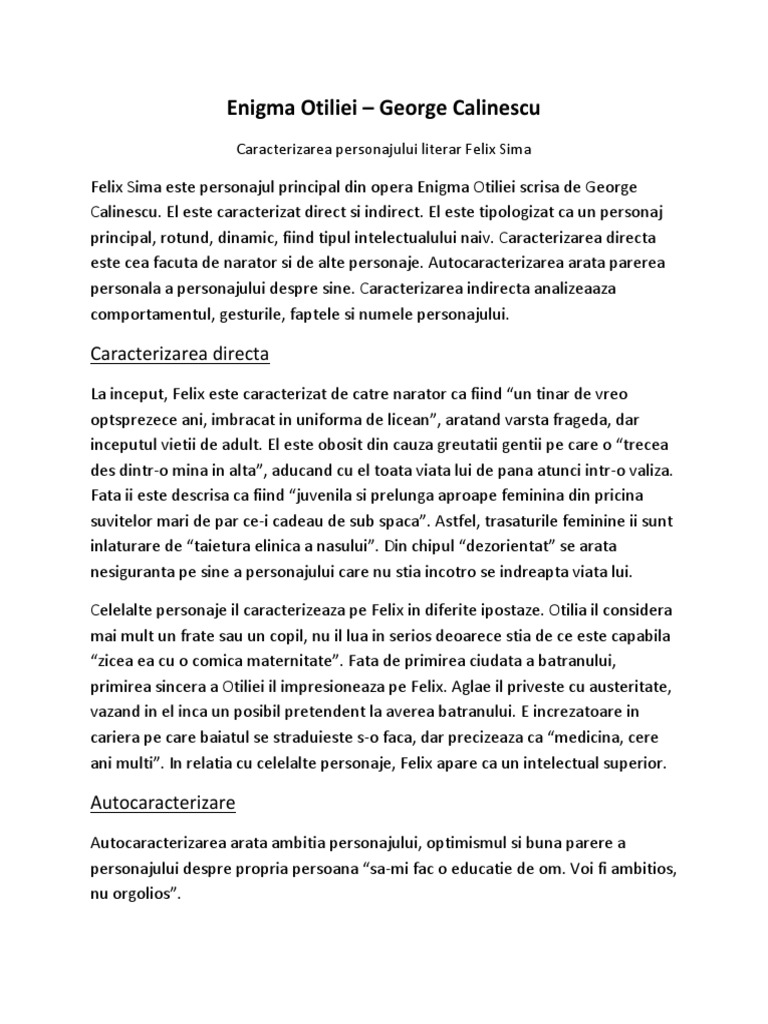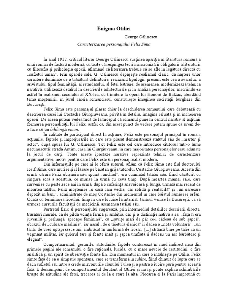 Doc Enigma Otiliei Caracterizarea Lui Felix20200224 33176 Ccxuw4 Teodora Hrincescu Academia Edu