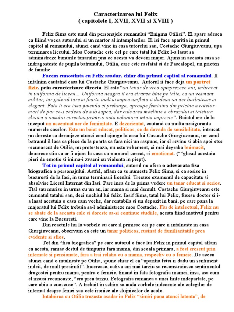 Enigma Otiliei Caracterizare Felix Sau Otilia Sa Nu Fie Prea Scurta Sau Copiata De Pe Alte Brainly Ro