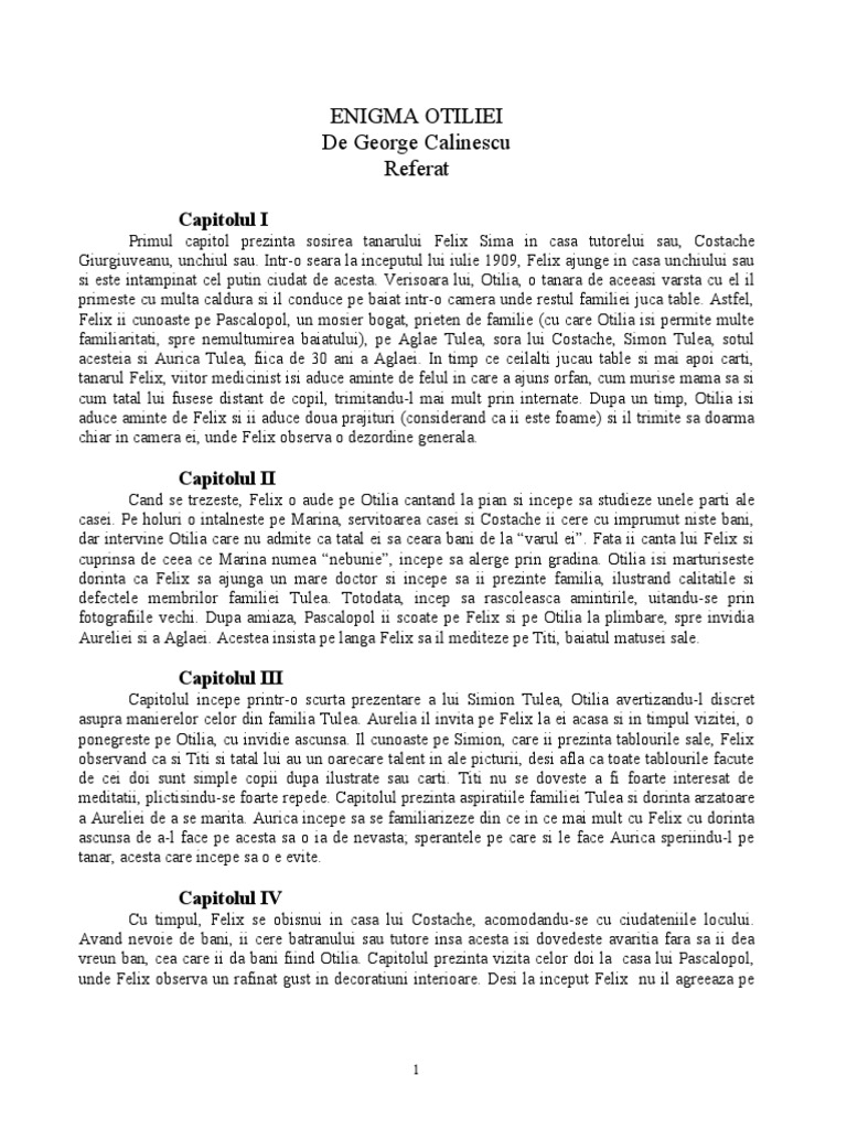 Referat Enigma Otiliei George Calinescu 284459 Graduo