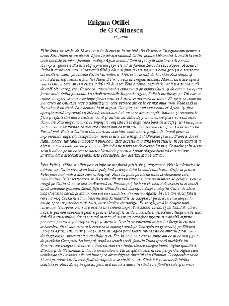 Rezumat Enigma Otiliei 178544 Graduo