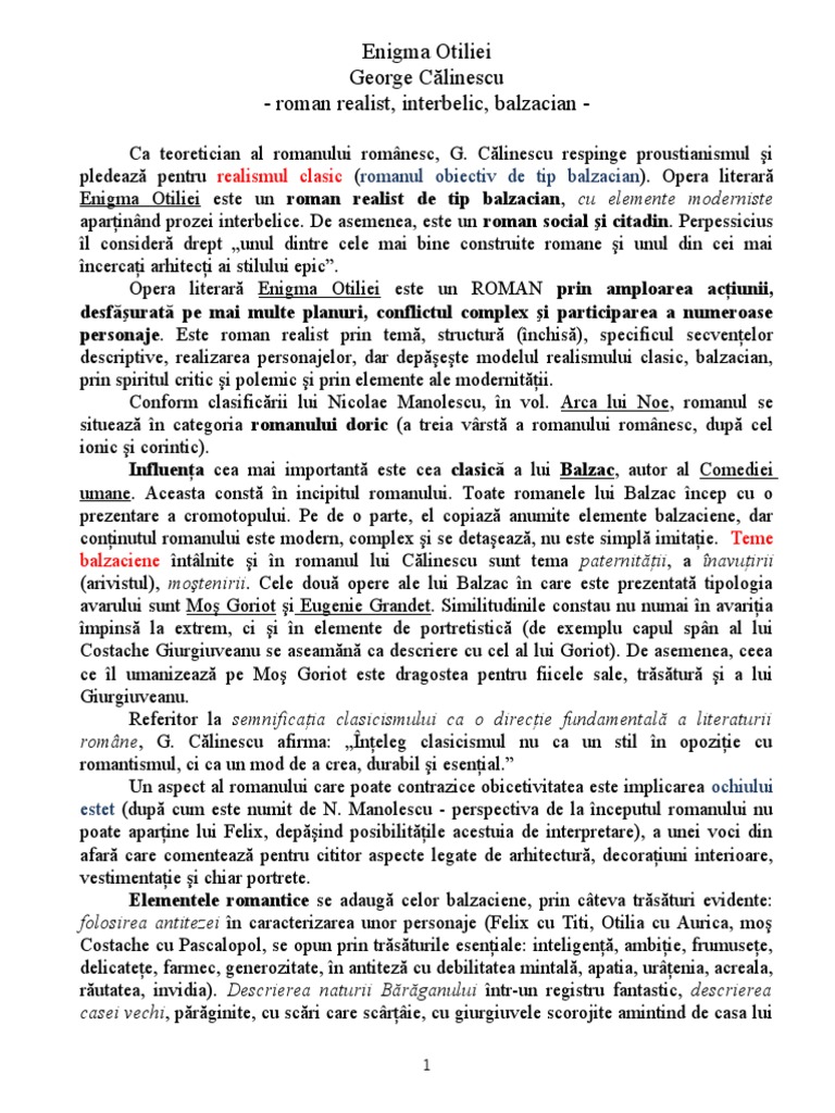 Enigma Otiliei Doc Doc Document