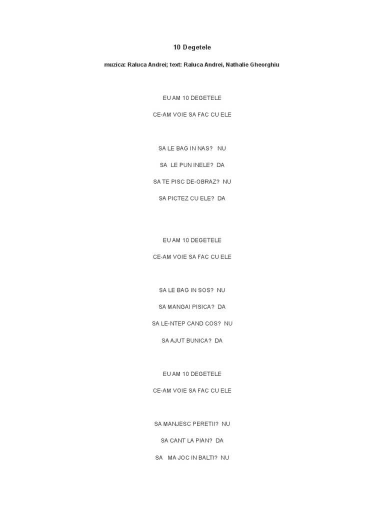 Versuri 10 Degetele Eu Am Zece Degetele X2 Ce Am Voie Sa Fac Cu Ele