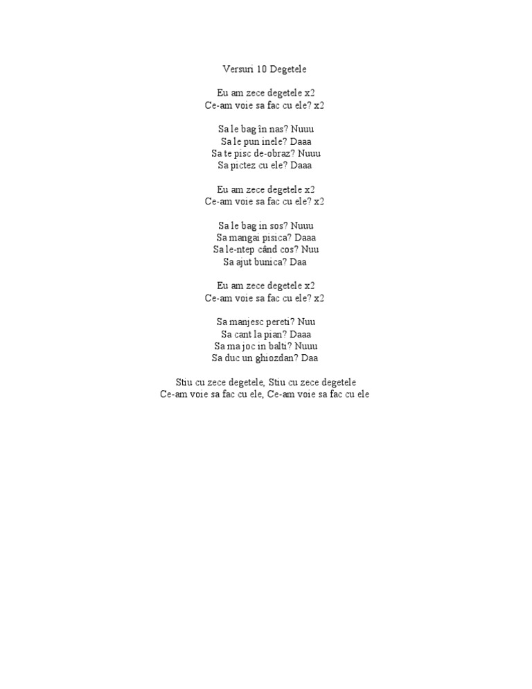 Versuri 10 Degetele Eu Am Zece Degetele X2 Ce Am Voie Sa Fac Cu Ele