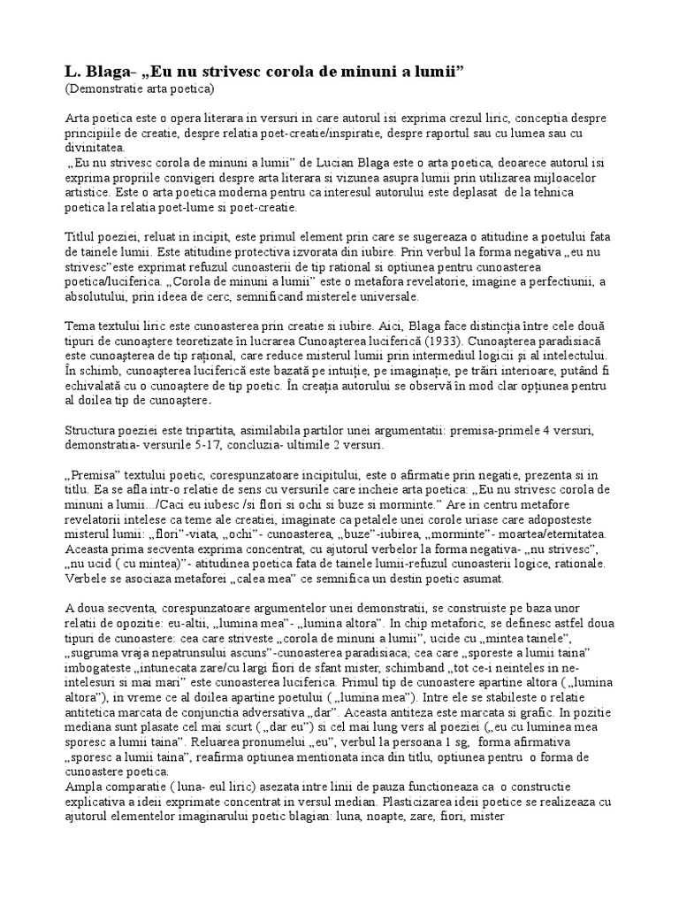 Lucian Blaga Eseu Bac Eu Nu Strivesc Corola