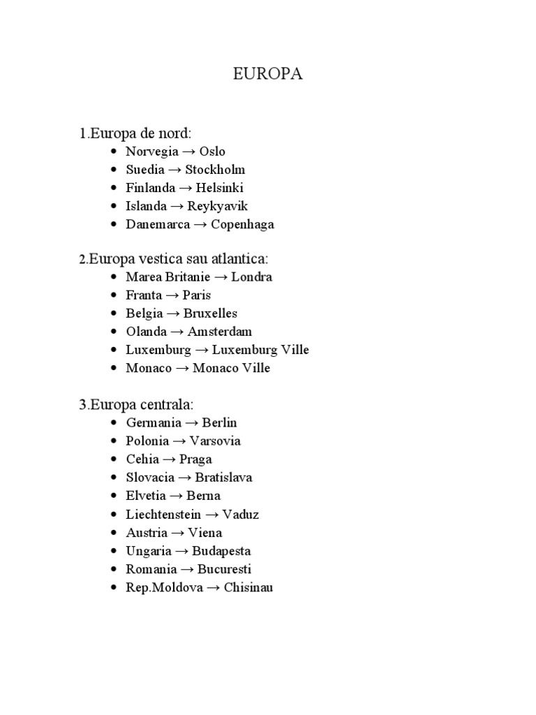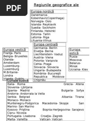 Europa Tari Si Capitale Pe Regiuni