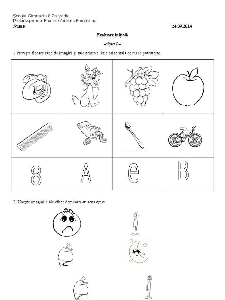 Fise De Lucru Scolari I Iv Fisa De Evaluare Initiala Clasa I Clr Comunicare In Limba Romana