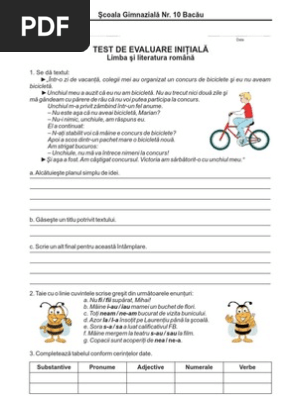 Test De Evaluare Initiala Clasa A Iv A Limba Romana
