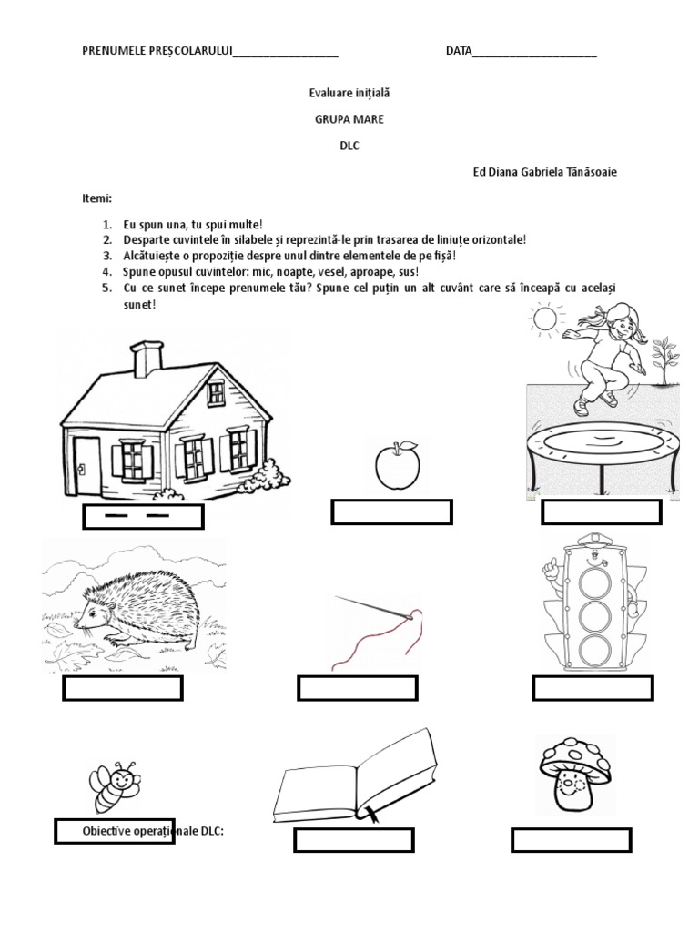 Fise De Lucru Gradinita Fise De Evaluare Initiala Grupa Mijlocie Ds Dlc Dos