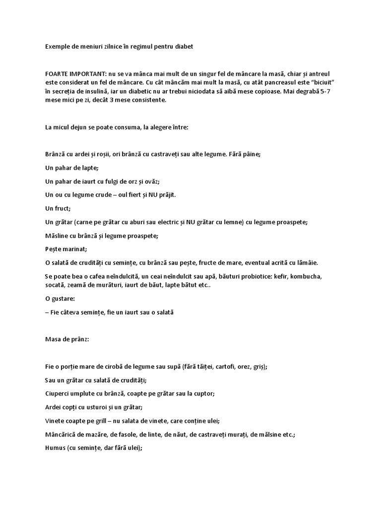 Exemple De Meniuri Zilnice In Regimul Pentru Diabet Docx