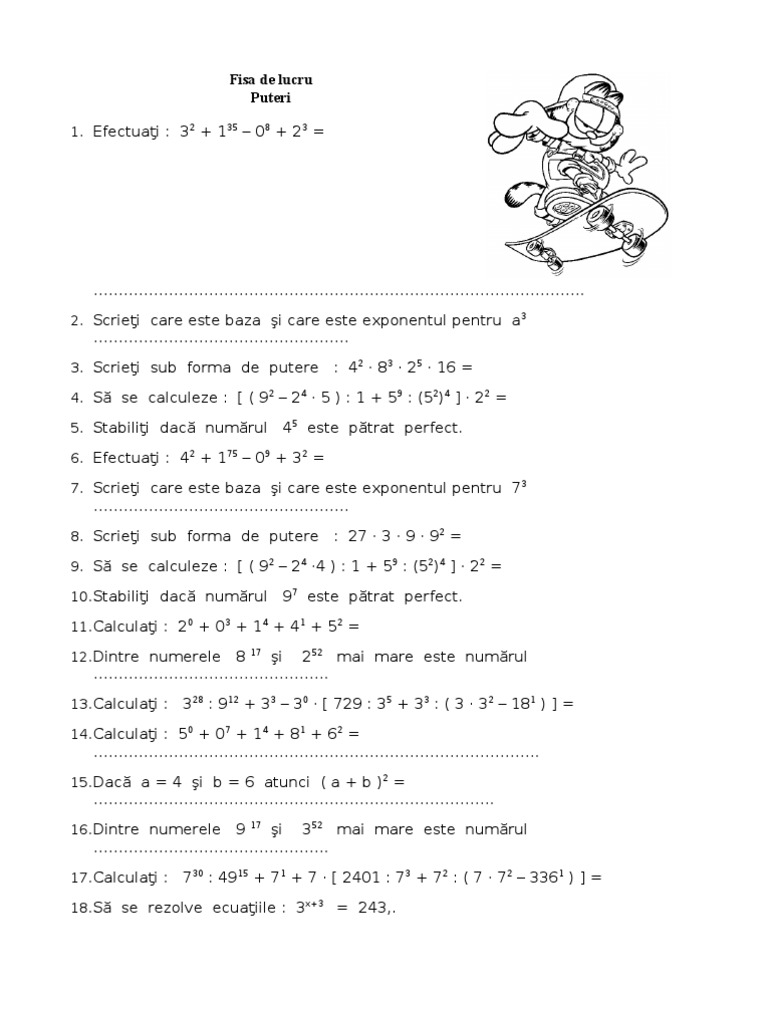 Fisa De Lucru Cu Puteri Clasa A 5 A