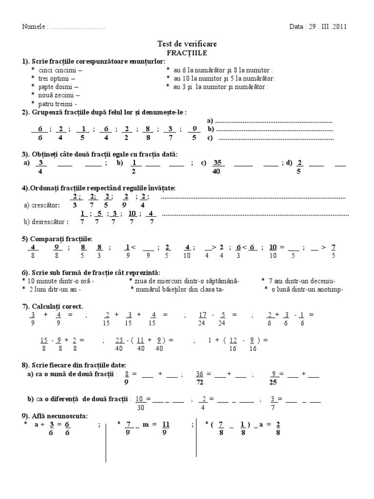 Test Fractii Ordinare Cls V
