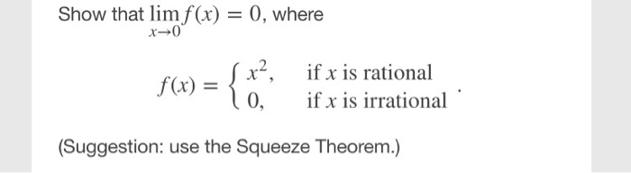 Solved Show That Lim F X 0 Where 2 X If X Is Ration Chegg Com