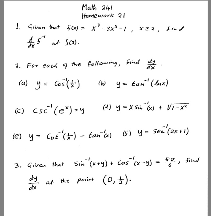 Solved Math 24 Homework 21 1 Given That F X X 3x2 1 Chegg Com