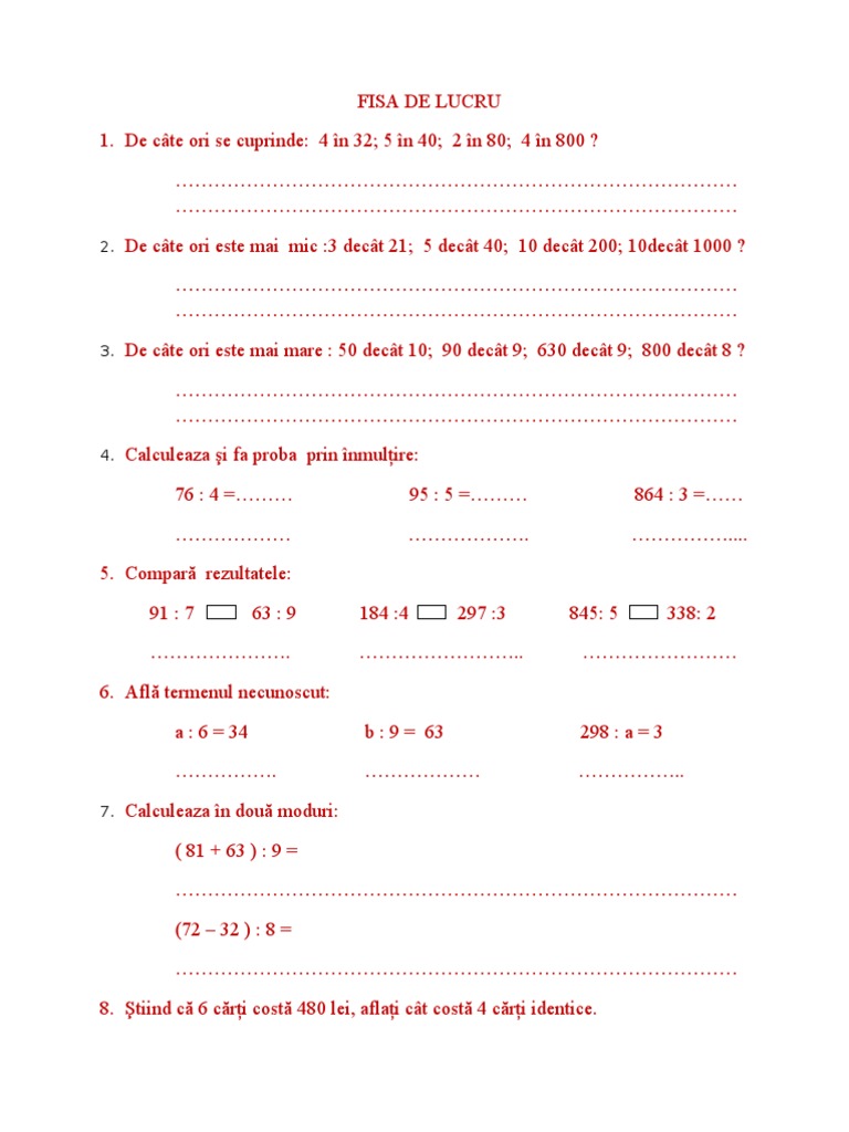 Fisa De Lucru Clasa A Iiia Inmultirea Si Impartirea Qvnd6jyg5r4x