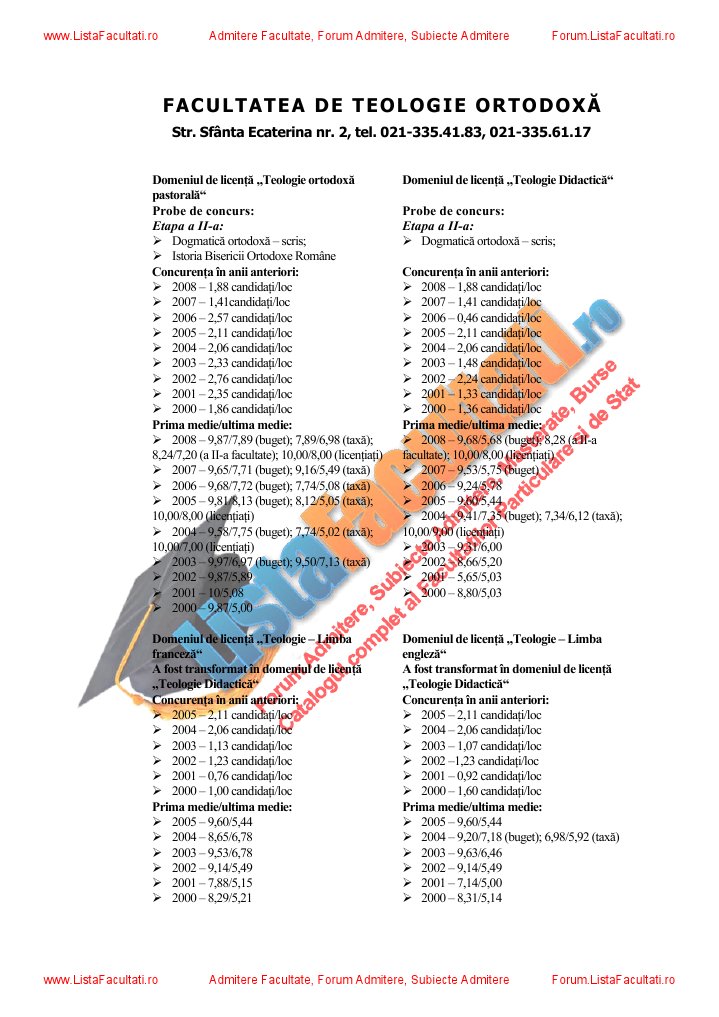 Listafacultati Ro Subiecte Admitere Universitatea Bucuresti Teologie Ortodoxa 2008