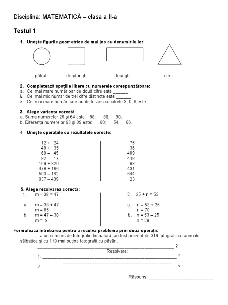 Test Mate Clasa Ii Pentru Culegere